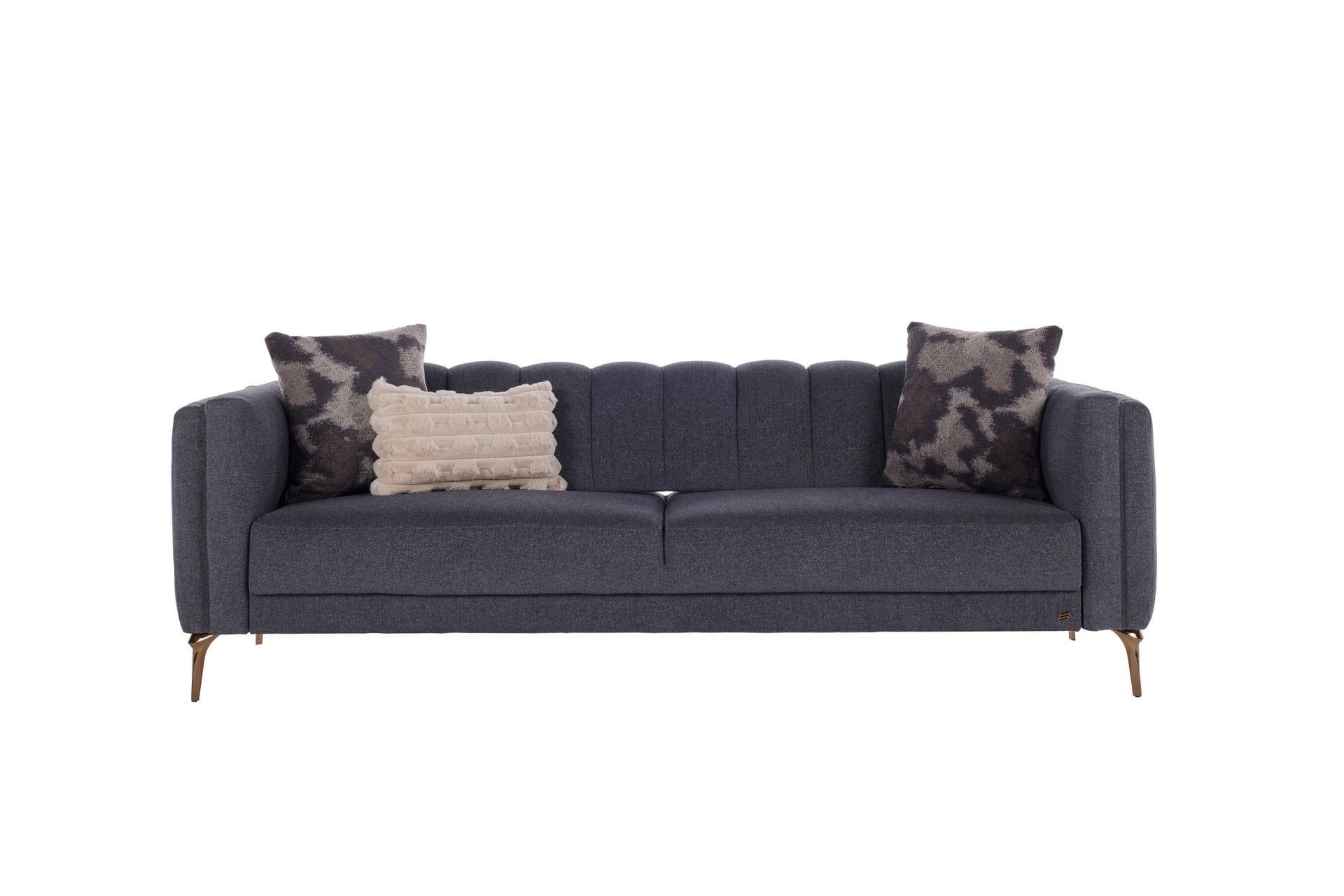 Vanessa Üçlü Koltuk Antrasit, zarif tasarımı ve işlevsel özellikleriyle yaşam alanlarınıza lüks ve konfor getiriyor. Sırttan takla atan mekanizması sayesinde yatak olma özelliği sunarak hem oturma hem de uyku alanı ihtiyacını karşılar. Dikey kapitone detayları, şık dokuma keten kumaşı ve bronz metal ayaklarıyla modern ve sofistike bir görünüm sağlar. 32 dns soft sünger oturumu, konfor ve dayanıklılık sunarken, kolay temizlenebilir kumaşı günlük kullanımda pratiklik sağlar. Vanessa Üçlü Koltuk Antrasit, estetik ve işlevselliği bir arada sunar.